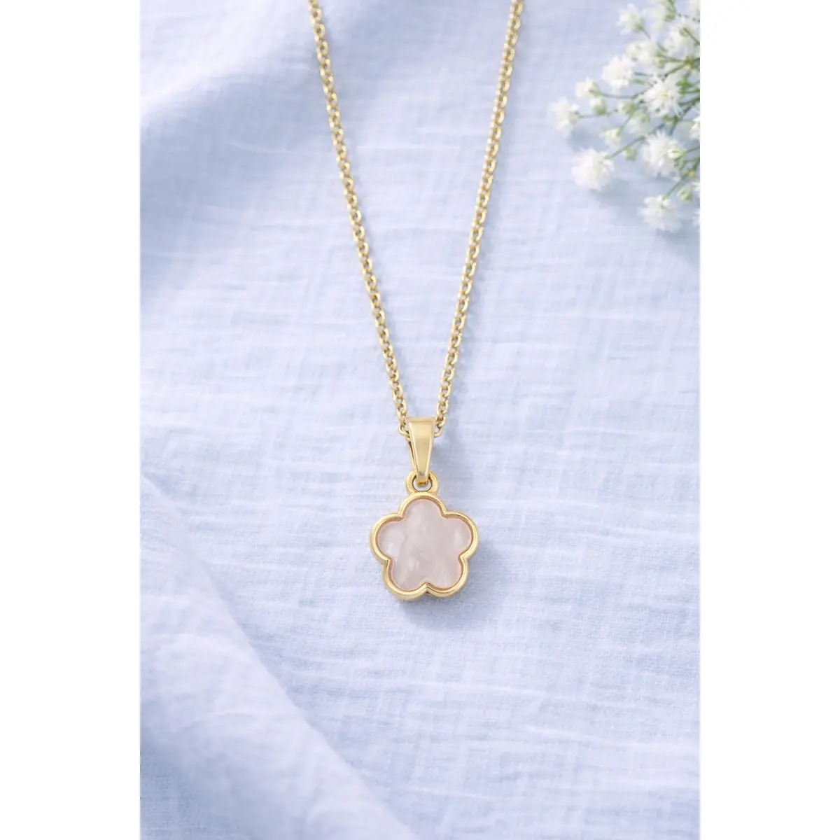 A softly romantic pendant shaped like a four petalled flower, crafted in warm gold plate.
