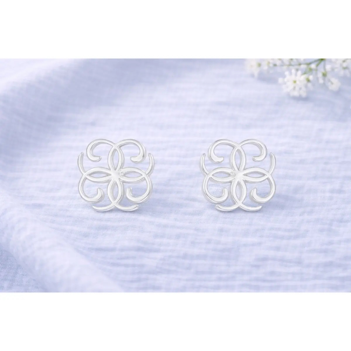 Delicate silverplated studs built around a soft, symmetrical quatrefoil motif.