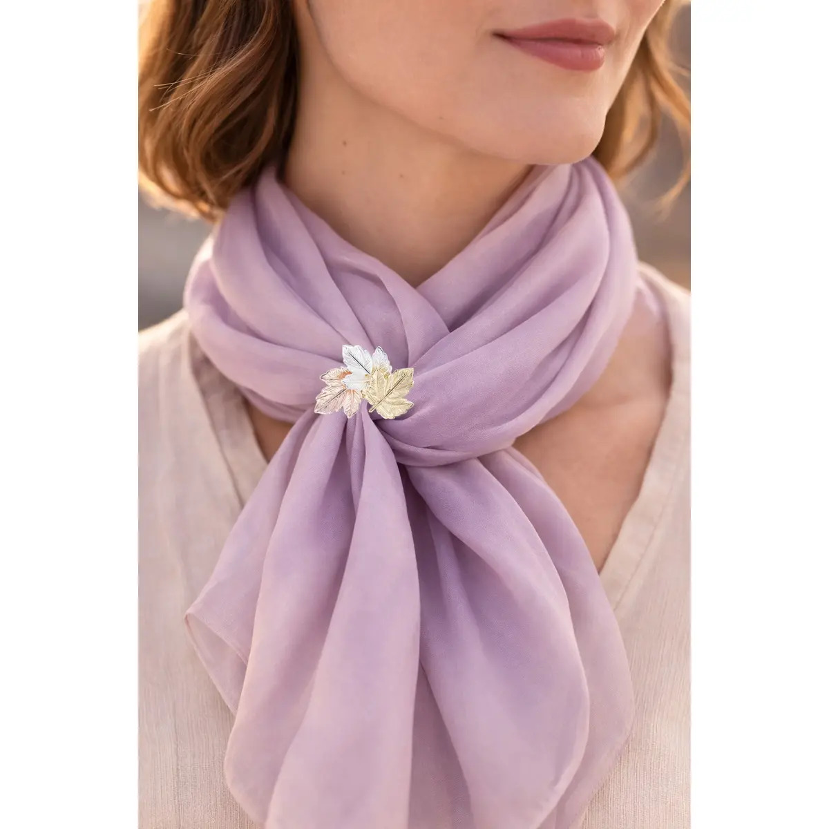 A trio of beautifully stylised metallic leaves, each one rendered in a different finish. One is gold, one is silver, and one is rose gold.