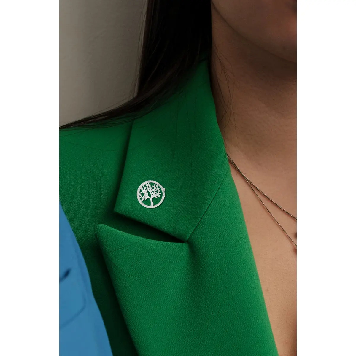 A polished silver Tree of Life framed by a halo of bright cubic zirconia stones.